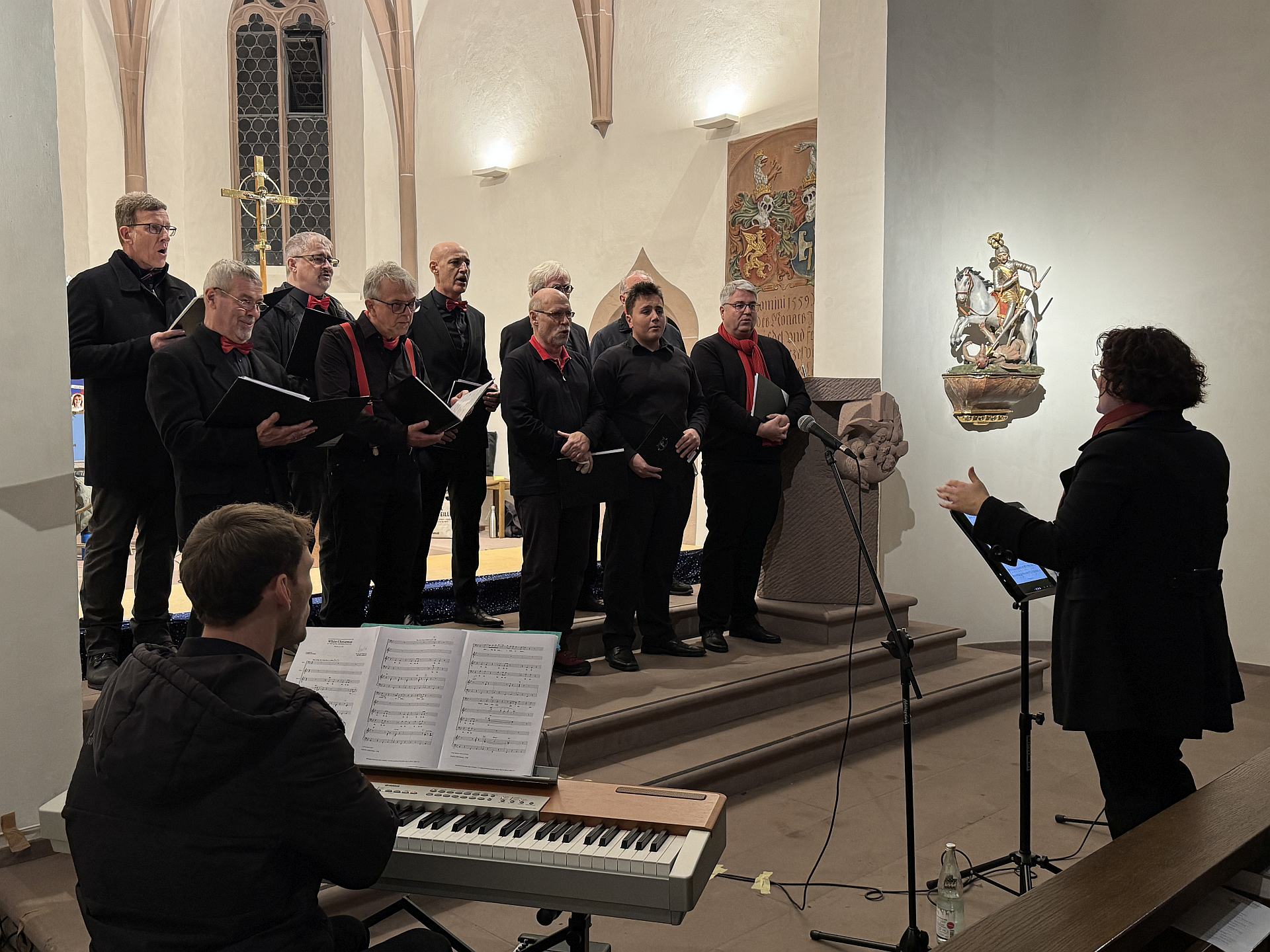 Für viele ist es immer ein Highlight, wenn das Männerchörle des Vereins singt. Mit einem klangvollen „Andachtsjodler“, dem swingenden „White Christmas“ (mit gekonntem Falsett Solo von Christian Schüber) und „Non nobis Domine“ (aus dem Film „Henry V“) erfreuten sich die Zuhörer über den wunderschönen Männerchor Klang. Bemerkenswert ist die Leistung des Pianisten Manuel Klingenmeier, der beide Konzerte elegant am Piano begleitete und unterstützte. Und so kam es, dass bei beiden Konzerten, die jeweils voll besetzte Kirche kräftig applaudierte und nach einer Zugabe verlangte, dem die Chöre natürlich gerne nachkamen. Im Anschluss an die Konzerte konnte man bei Punsch und Kuchen das Konzert an einer Feuerstelle nachklingen lassen und einen wundervollen 2. Advent genießen.