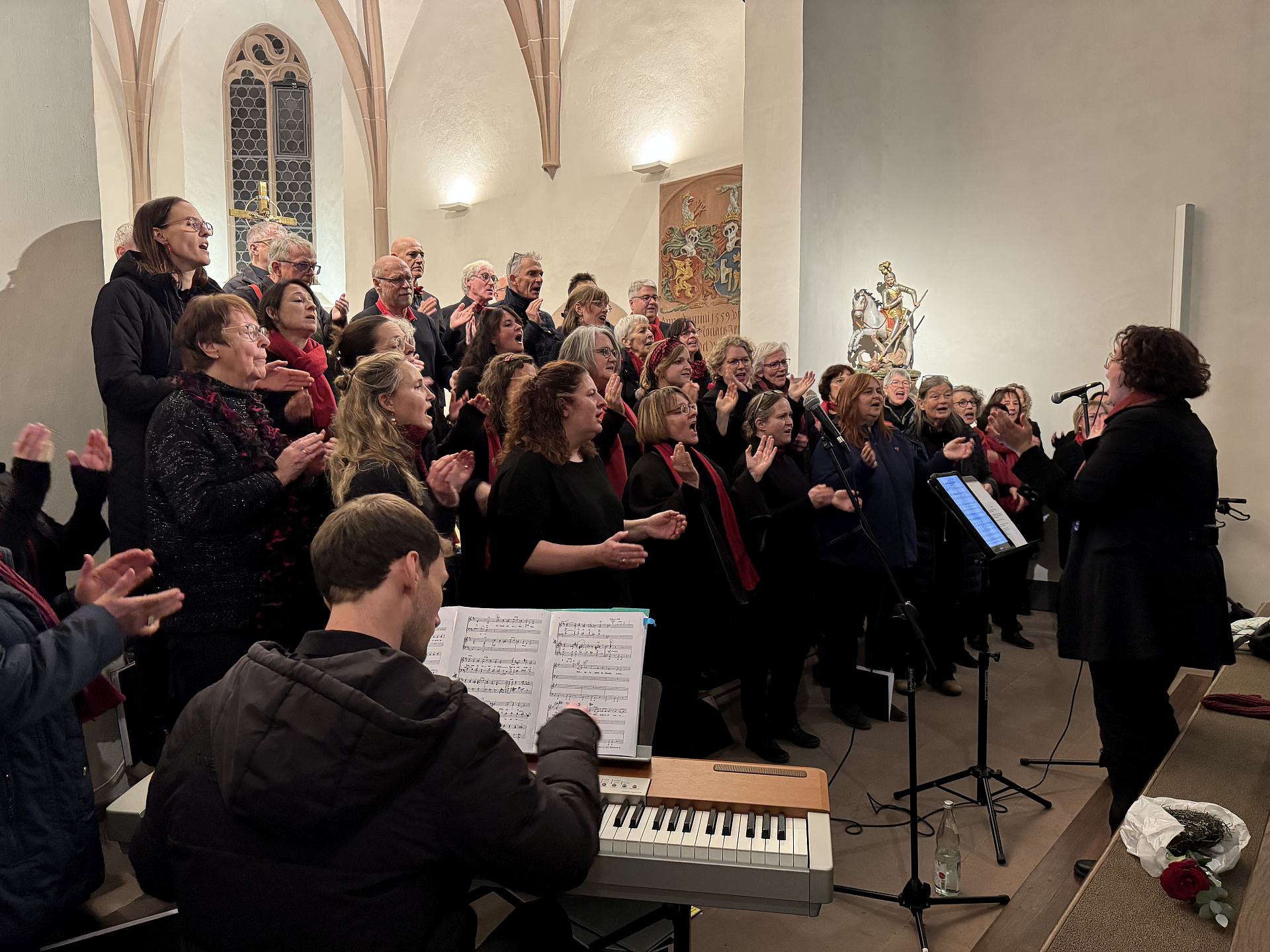 Das Abendkonzert war ein Konzert mit einzigartiger Atmosphäre. Mit Gedichten & Texten stimmten die Dirigentin Amely Heim und Chorsänger Alexander Kloth das Publikum auf die Lieder ein und gaben Gedankenimpulse. So war man über eine Stunde in den Bann gezogen und lauschte dem vollen, klaren Klang des Chores.