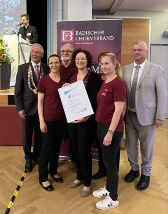 Über diese Auszeichnung für unser Projekt „Wunschkonzert Ihr habt gewählt - wir singen!“ haben wir uns sehr gefreut. Die Preisübergabe fand am Sonntag, 18.05., beim Badischen Chorverbandstag in Ettlingen statt.