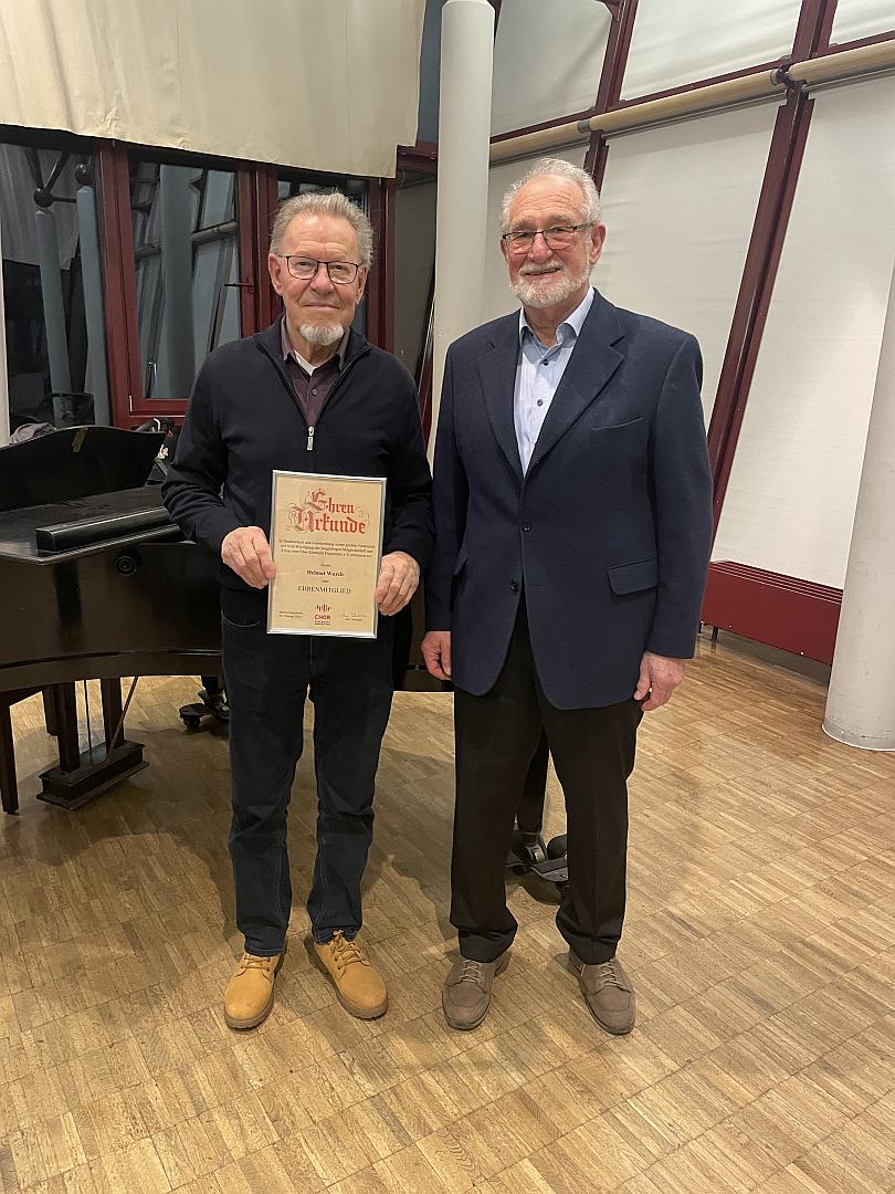 Der 1. Vorsitzende Armin Lambrecht schlug Helmut Wurch vor ihn zum Ehrenmitglied zu ernennen. Die Versammlung stimmte diesem Antrag einstimmig zu. Der 1. Vorsitzende überreichte die Ehrenurkunde.